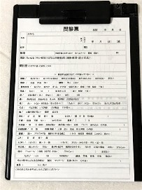 問診表 来院されましたら、まず問診表に必要事項を記入して頂きます。氏名、連絡先、主訴(辛いところや、現在の症状など)血圧、生理、便通、睡眠、嗜好品など。これらは治療に際して大切な情報なので、お分かりになる限り記入お願いします。